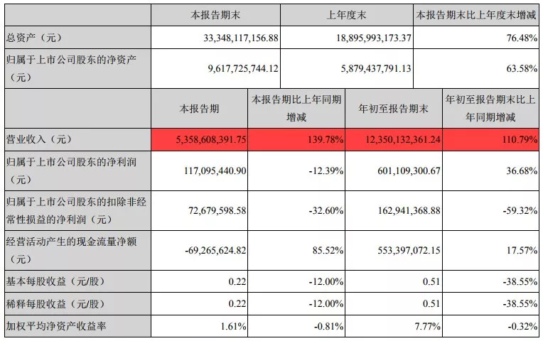 营收:123.5亿元,同比增长110.79%