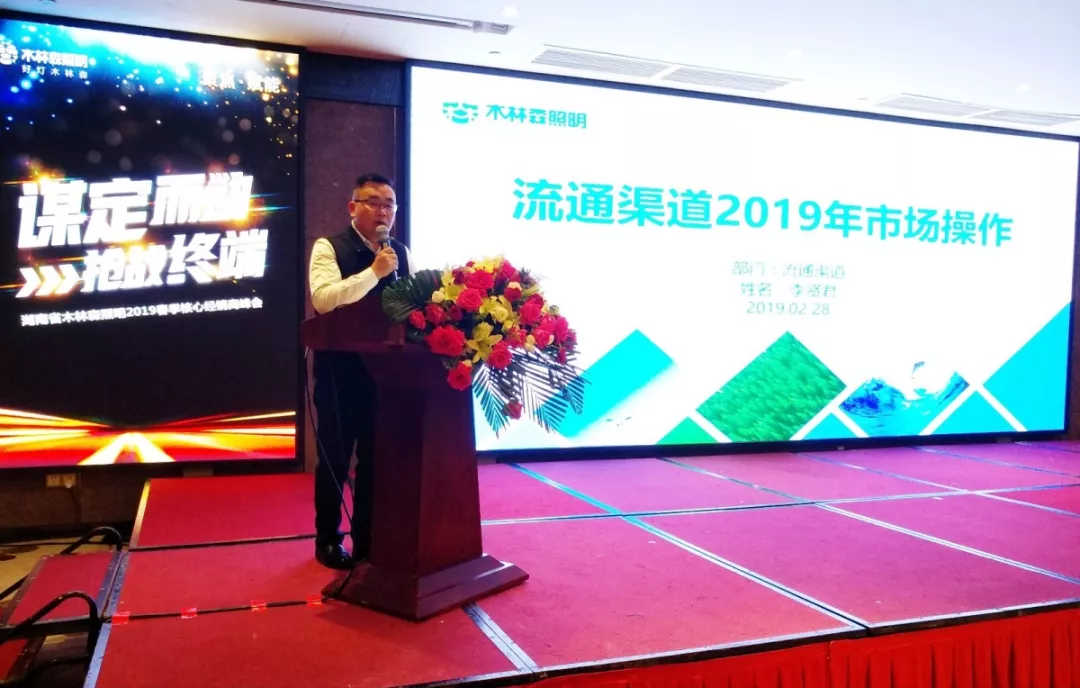 同时,木林森照明流通渠道全国营销总监李贤君和木林森照明家居渠道全国营销总监吴三春也介绍了更加细化的《2019年木林森照明流通渠道经营规划》和《2019年木林森照明家居渠道经营规划》,木林森照明流通渠道湖南办事处经理刘志超则从区域范围出发介绍了木林森照明湖南省区流通渠道规划,加上木林森照明湖南运营中心操盘手黎洋彪对会议政策的宣讲及答疑,为与会嘉宾提供了具体详细的战略战术指导,让整个现场士气高昂,对未来充满信心。