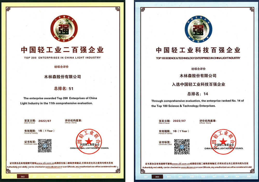 2021年度,木林森实现营业收入186.15亿元。凭借优异的成绩,木林森荣获2021年度中国轻工业科技百强企业(排名14)、再度蝉联2021年度中国轻工业二百强企业(排名51)。积极响应国家“轻工强国”建设,加大科技创新投入提升核心竞争力,木林森综合排名较2020年排名上升。